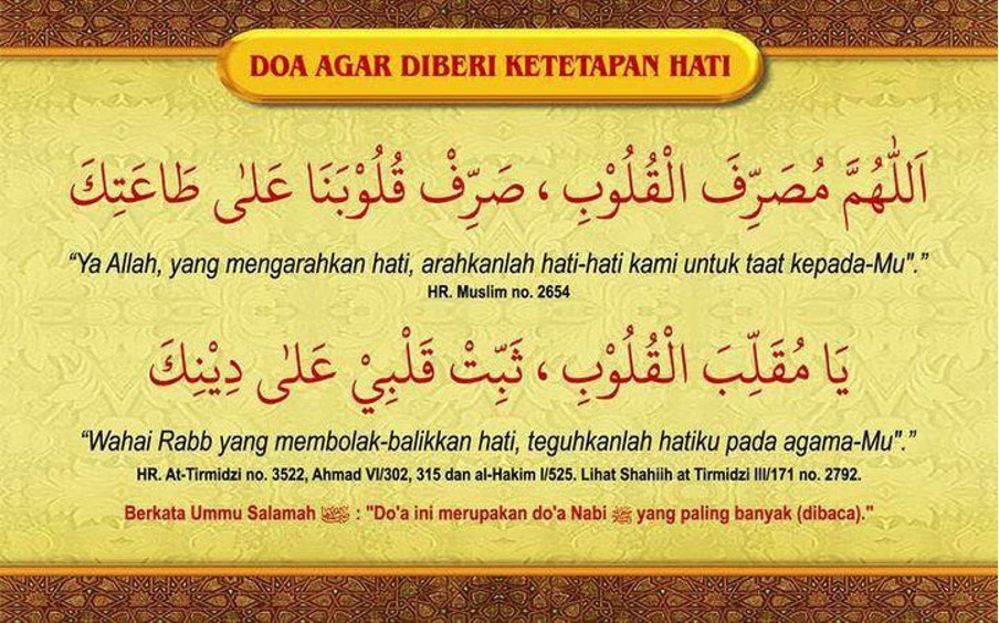 Maksudnya: “Wahai Tuhan yang membolak-balikkan hati, tetapkanlah hati kami di atas agama-Mu.”